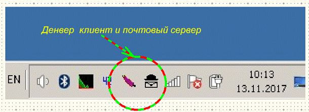 Выполняете Start Denver и ожидаете появление иконки работы сервера сайтов.