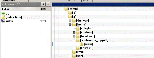 Создаете каталог WWW - там и должен располагаться первый файл index.html С:\temp\2\home\shabronov_mpp78\www\index.html