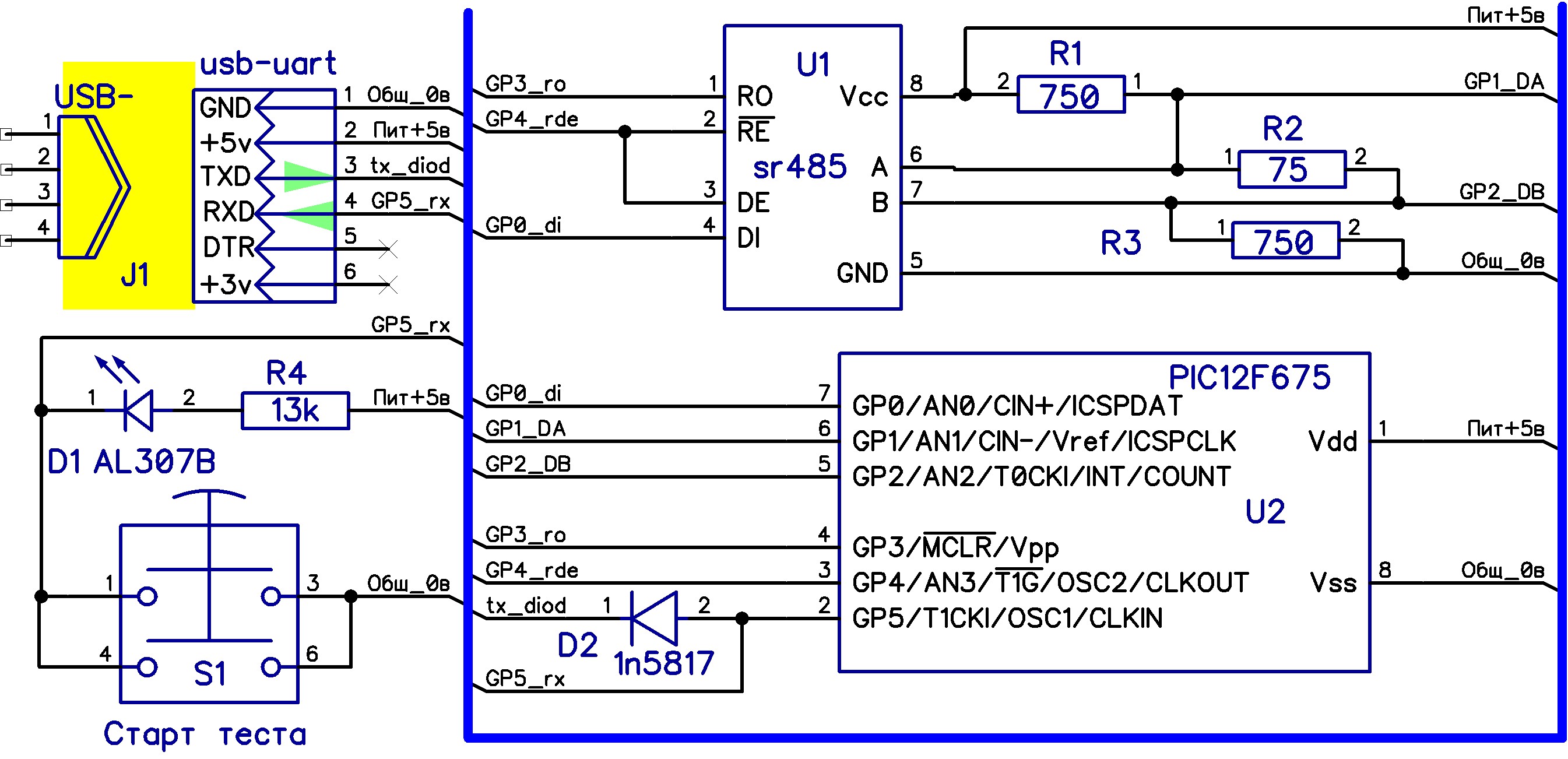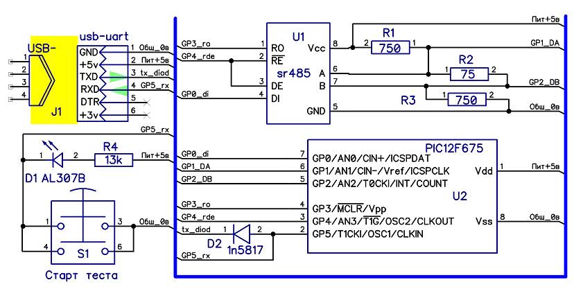Схема тестера на мк 12f675